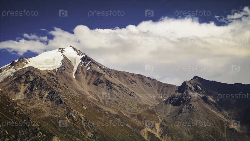 Летний пейзаж в горах и темно-синее небо. Время истекло. Сток. Исчезнувшие ландшафты с горными вершинами и облачным небом