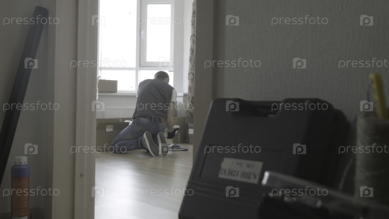 Человек ищет что-то в коробке, общий взгляд