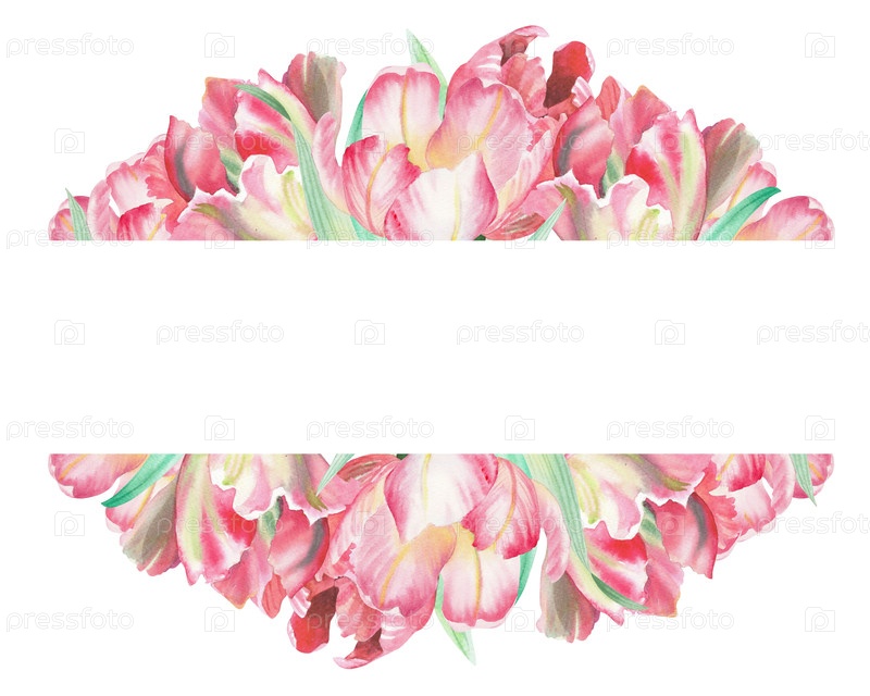 Баннер тюльпанов. Иллюстрация акварели. Для ткани, обоев, упаковочной бумаги, поздравительных открыток, дизайна, декора и иллюстрации
