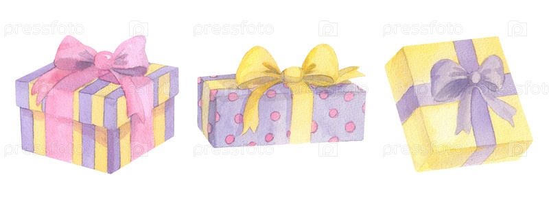 Набор подарочных ящиков. Иллюстрация подарковых коробок ручной работы. Для ткани, упаковочной бумаги, поздравительных открыток, дизайна, декора и иллюстрации