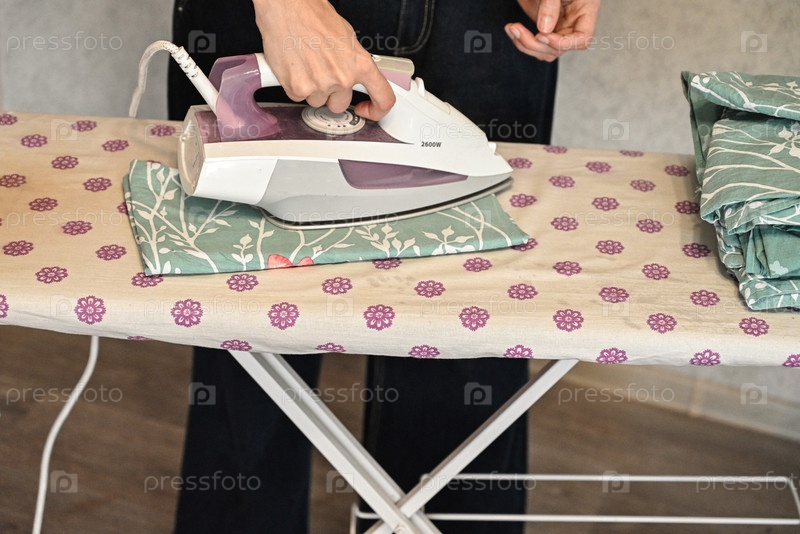 Женщина гладит одежду дома в уютной комнате с растениями и теплым освещением