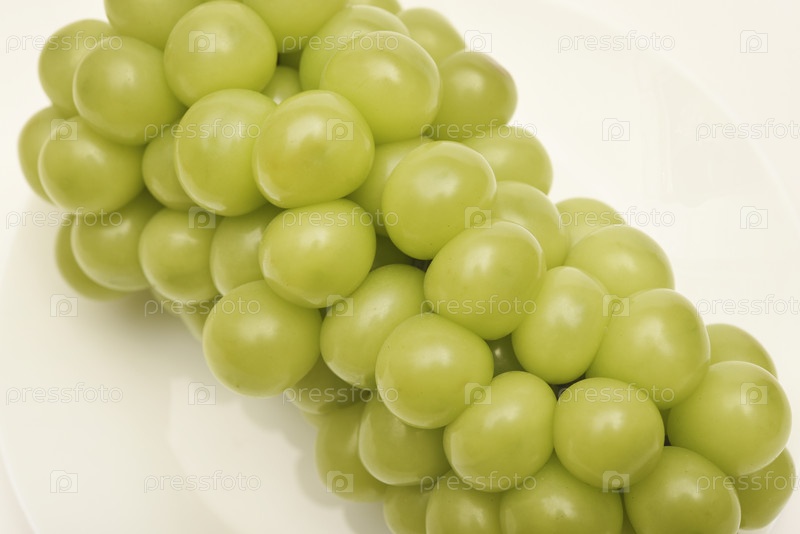 Виноград Big Shine Muscat. зеленый виноград на белом фоне. гроздья винограда на тарелке