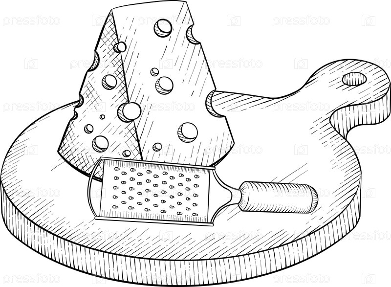 Коллекция сыров, бри, кемберта, пармезана и голубого сыра, европейского сырного ассортимента, ломты, черный рисунок с гравюрой чернилами, изолированные, прозрачные. бутылка вина и стекла, виноград и инжир