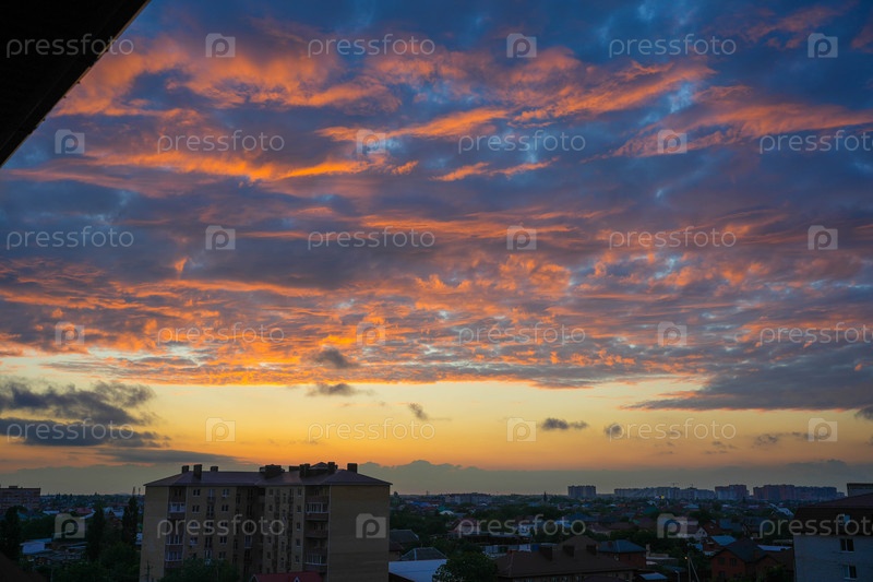 Небо окрашено в оранжевые и синие тона