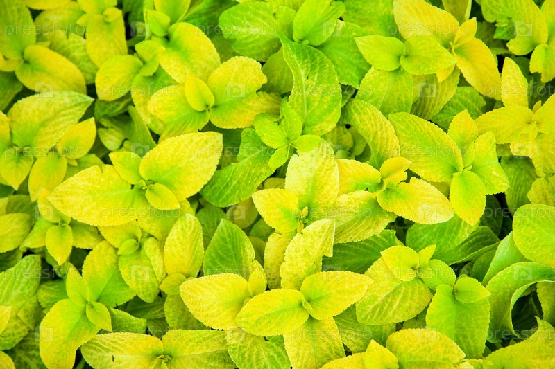 Coleus blumei Wizard Gold, зеленый и желтый фон листьев вблизи друг от друга, яркий цвет лайка из пышной текстуры листвы. Абстрактный натуральный рисунок. Выборочный фокус