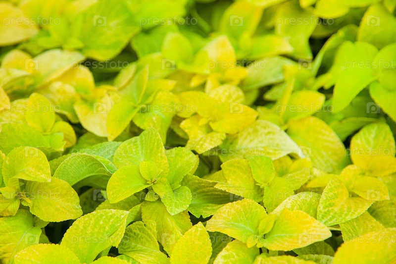 Coleus blumei Wizard Gold, зеленый и желтый фон листьев вблизи друг от друга, яркий цвет лайка из пышной текстуры листвы. Абстрактный натуральный рисунок. Выборочный фокус