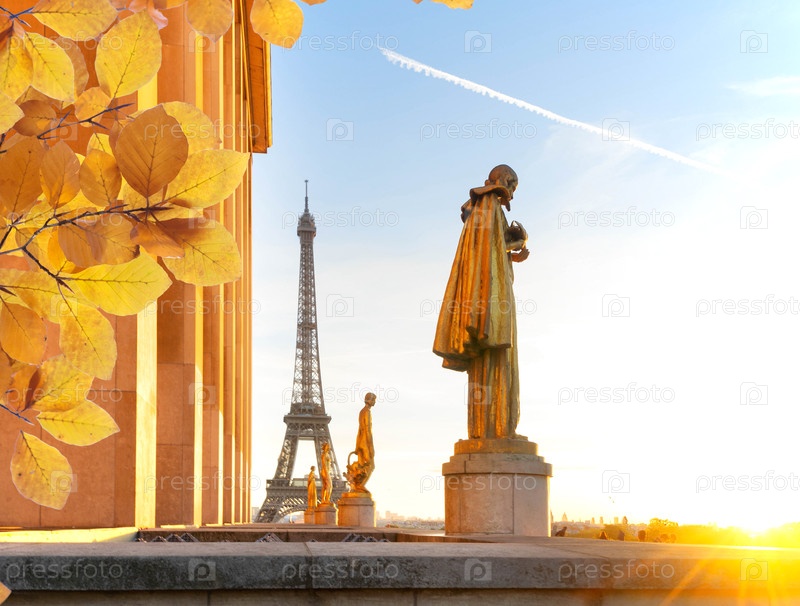 Знаменитая Эйфелева башня с садов на площади Трокадеро, Париж, столица Франции