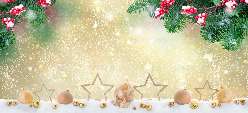 Рождественская широкая граница с золотым и красным снегом изолирована на белом фоне