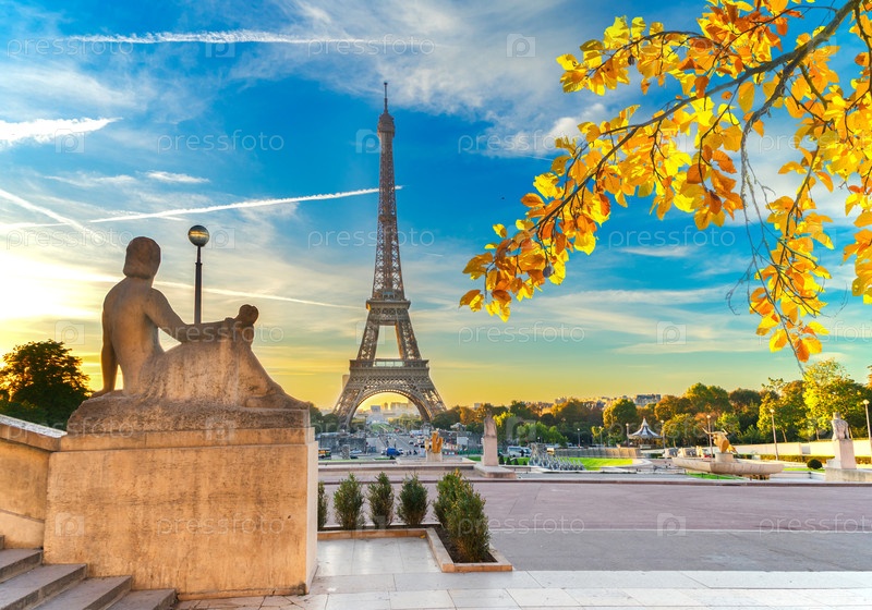 Эйфелева башня из сада Трокадеро на рассвете, Париж, Франция