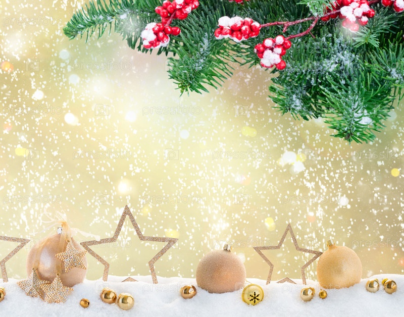 Рождественская граница со звездами и золотыми шарами, изолированными на белом фоне