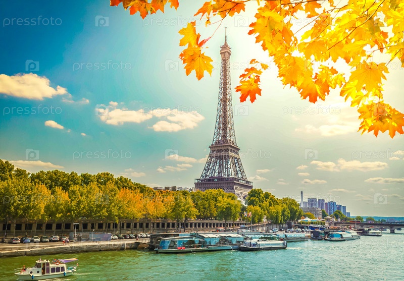 Экскурсия по воде реки Сены в осенний день, Париж, Франция