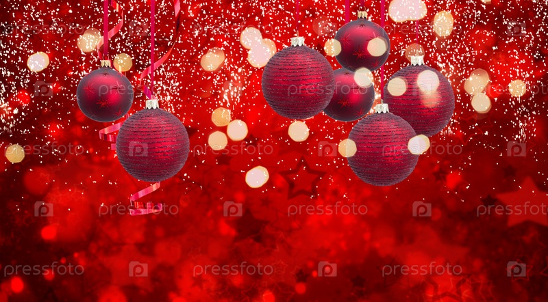 Красные рождественские шары закрываются на праздничном светящемся фоне