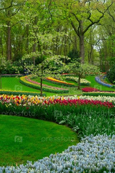 Путь через яркий сад тюльпанов в полном цветении во время восхитительного весеннего сезона захватывает дух