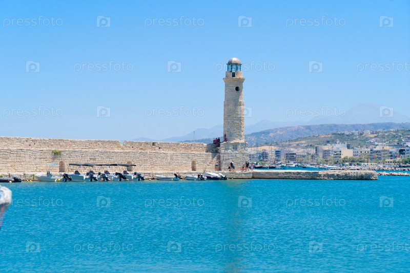 Гавань и маяк старого города Ретимно, Крит, Греция, Retro Toned