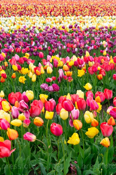 Цветное поле тюльпанов Знаменитый голландский с рядами в солнечный день с голубым небом
