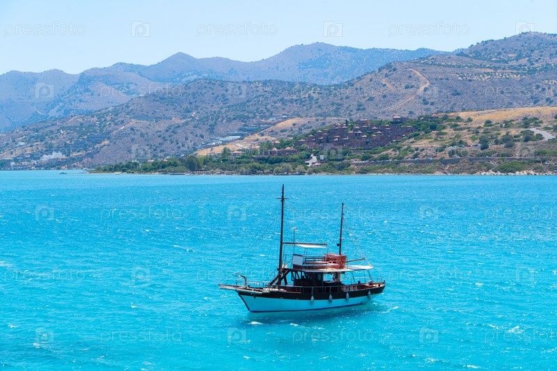 Пейзаж Элунда с лодкой, Крит, Греция