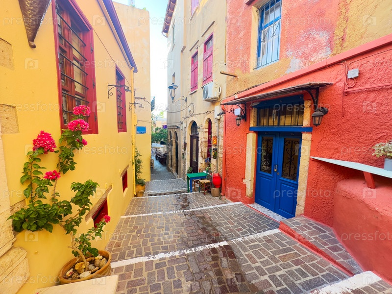 Уютная улица старого города Хании, Крит, Греция, Retro Toned