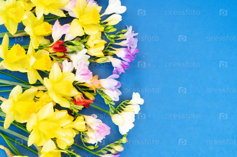Цветущие нарциссы, цветы гиацинта и фризии