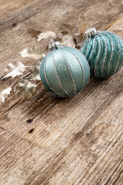 Рождественские украшения с листьями золотой ольхи на старом деревянном фоне