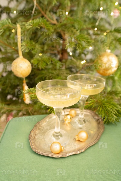 Наслаждайтесь элегантным тостом с шампанским под красиво украшенной рождественской елкой в этот праздничный сезон