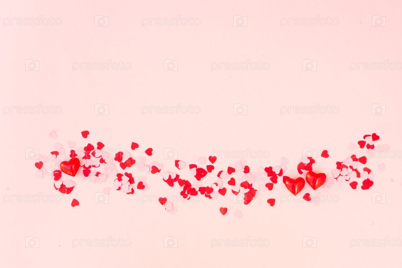 День святого Валентина праздничный фон с разбросанными сердцами на розовом фоне, копирование пространства