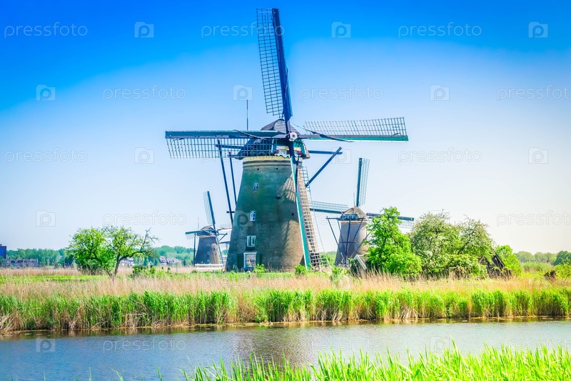 Голландская ветряная мельница над речной водой