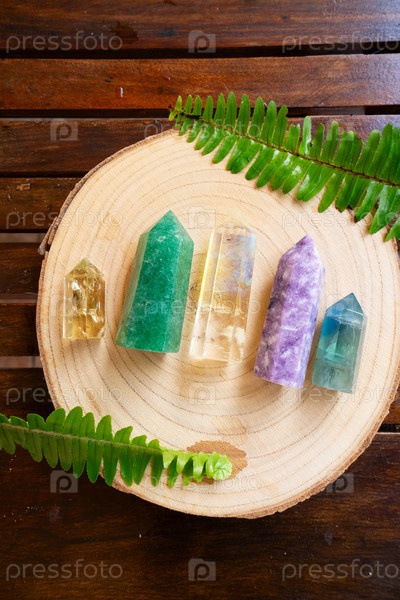 Исцеляющие кристаллы на коричневом фоне