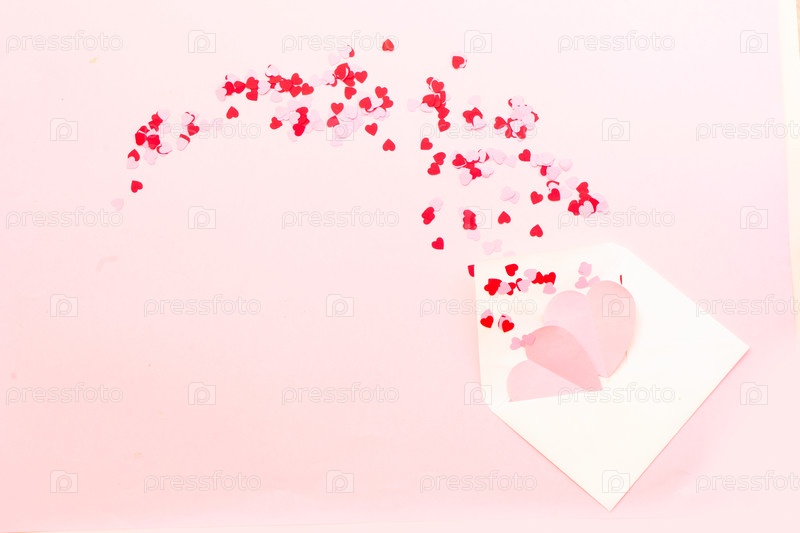 День святого Валентина праздничный фон с розовыми сердцами в конверте, любовное письмо с копиями пространства