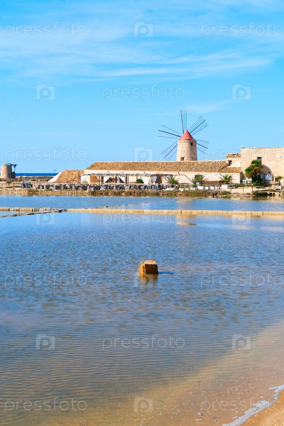 Трапани соляные котлы с ветряными мельницами, Сицилия Италия