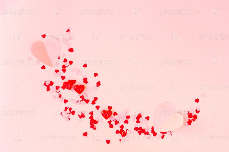 День святого Валентина праздничный фон с рассеянными розовыми и красными сердцами на розовом фоне с авторским правом