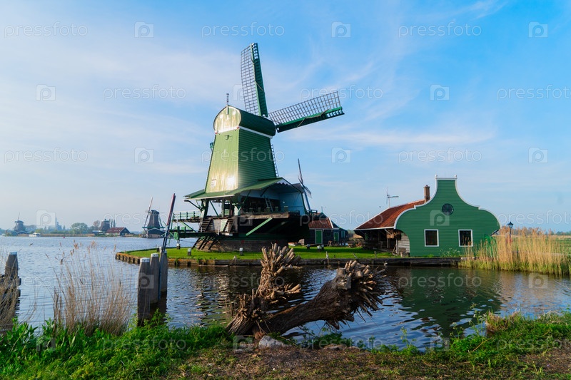 Сельские пейзажи голландской страны с традиционными ветряками, Нидерланды