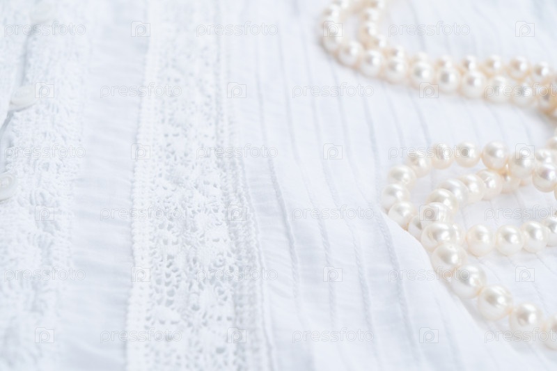 Сцена с жемчужинными украшениями, для свадебного приглашения, витрины продукта или стилизованной презентации с копией на поздравительной карточке, верхний вид