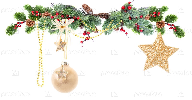 Декоративные шары на рождественской елке, Рождественская гирлянда изолирована на прозрачном фоне
