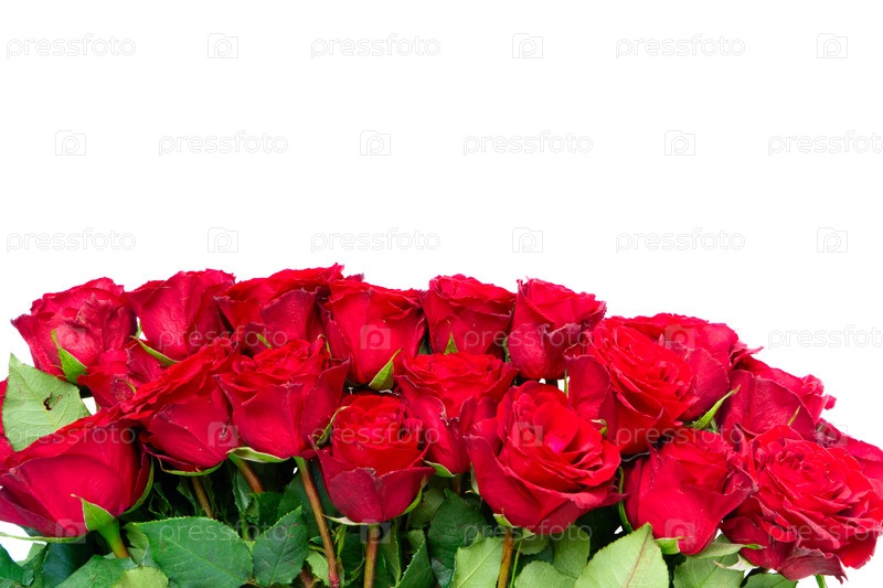 Красные цветы оранжевых роз граничат с белым фоном