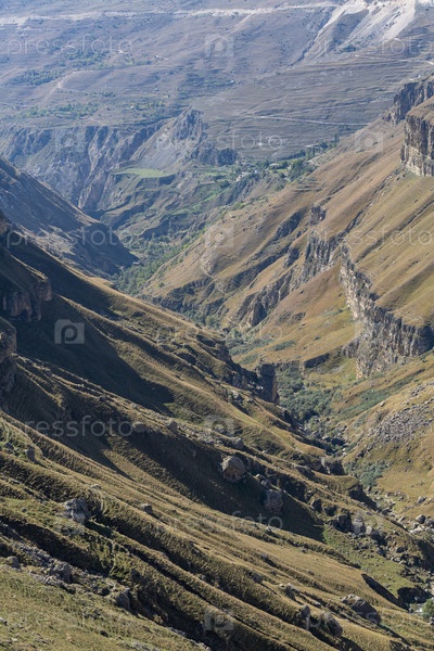 Пейзаж глубокого Цолотлинского каньона в Дагестане, республике в горах Северного Кавказа.Путешествие в солнечный осенний день, открытие дикой природы