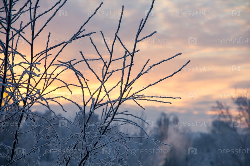 Замороженные ветви против неба