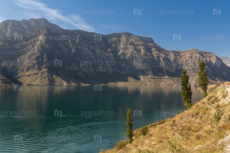 Панорамный вид на Ирганайское водохранилище в горном районе Республики Дагестан