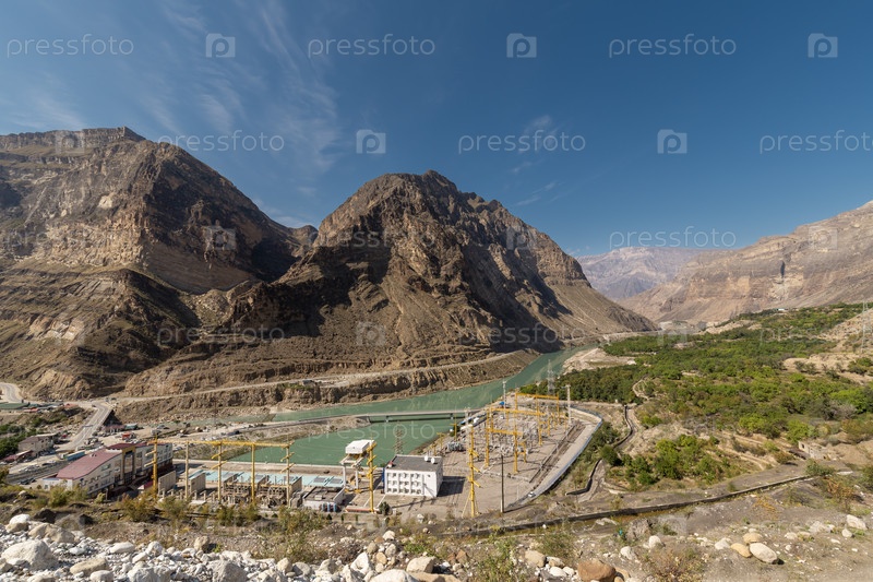 Вид на Ирганайскую ГЭС, окруженную горами