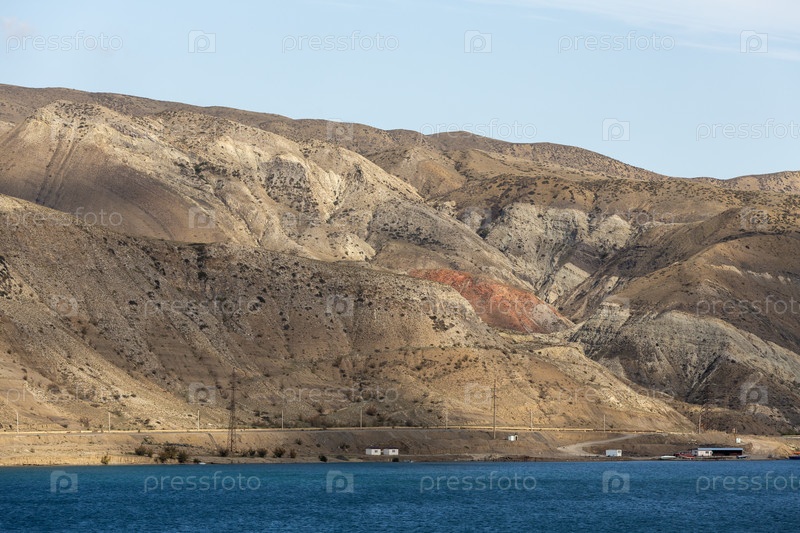 Панорамный вид на Чиркейское водохранилище в горах Республики Дагестан