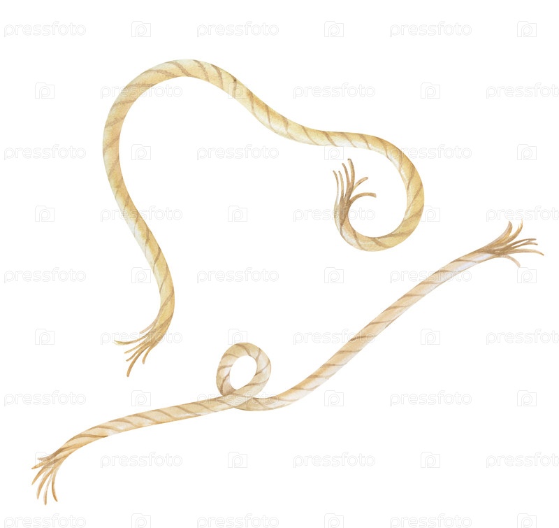 Установка с близнецом на изолированном фоне. акварельная иллюстрация искривленных конопляных веревок. реалистичный клипарт из жюти для украшения рыбалки и морской темы, а также хобби и ремонт дома
