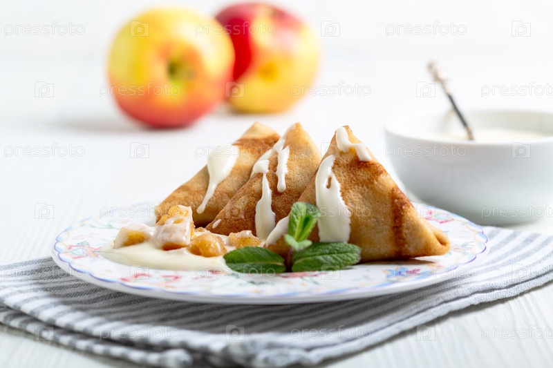 Тонкие блины с яблоками и корицей