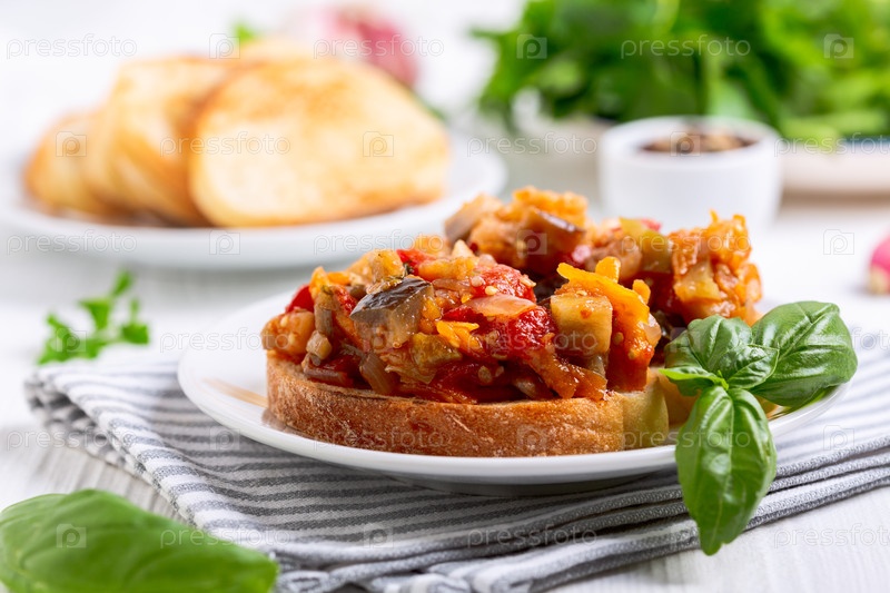 Запеченные овощи на ломтике хлеба