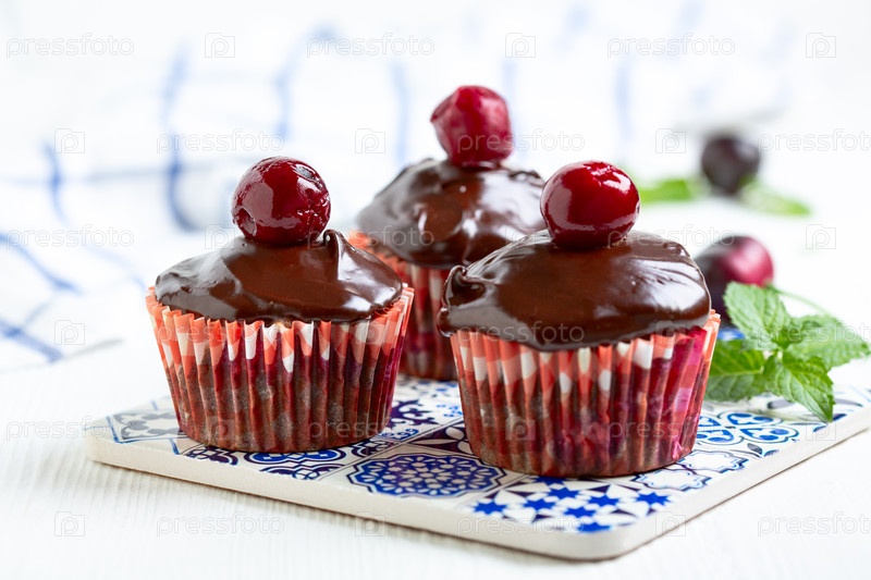 Домашние шоколадные кексы с вишнями