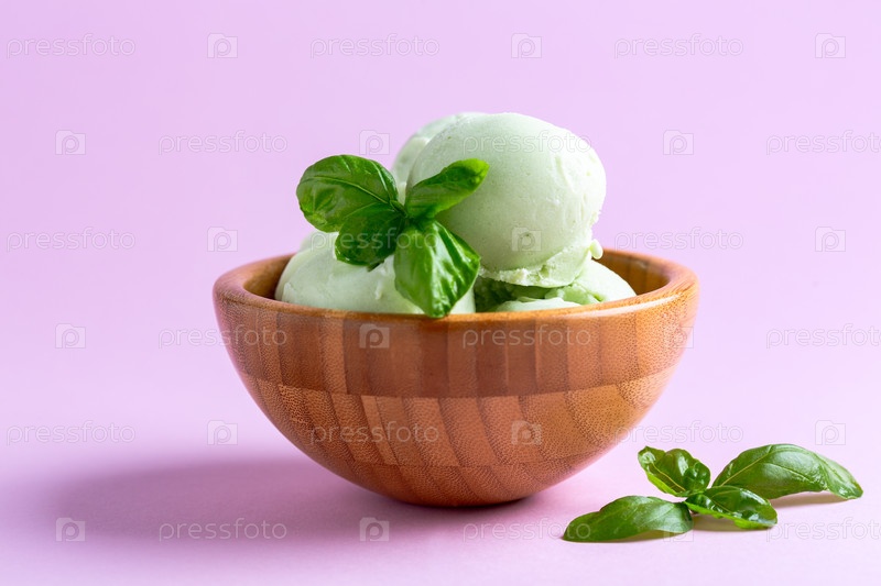 Мороженое из базилика в деревянной таре