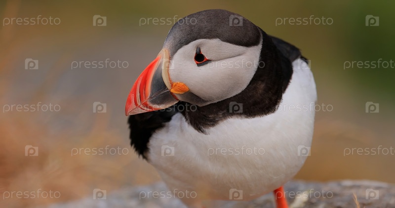 Атлантический пуффин (Fratercula arctica), в масштабе острова Рунде (Норвегия)