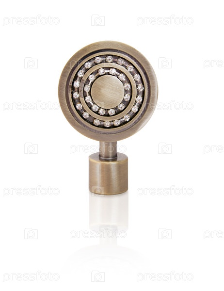Золотой бронзовый финал с кристаллическими акцентами, закрепленными на белом фоне