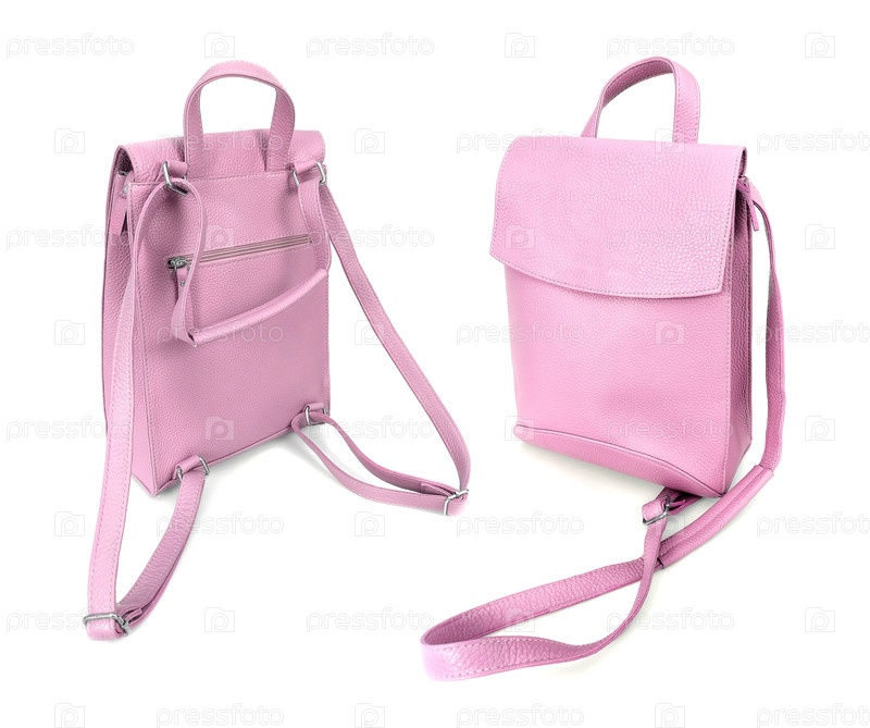 Элегантный женский розовый рюкзак изолирован на белом фоне