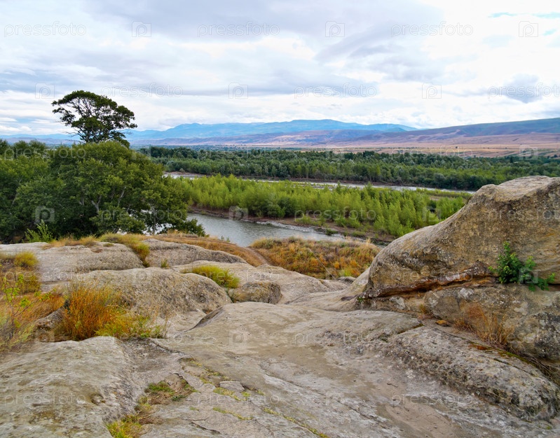 Панорама древнего пещерного города Уплистсихе, Грузия