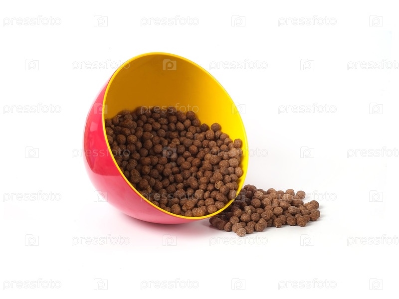 Шоколадные попкорны в пластиковой тарелке, изолированной на белом фоне
