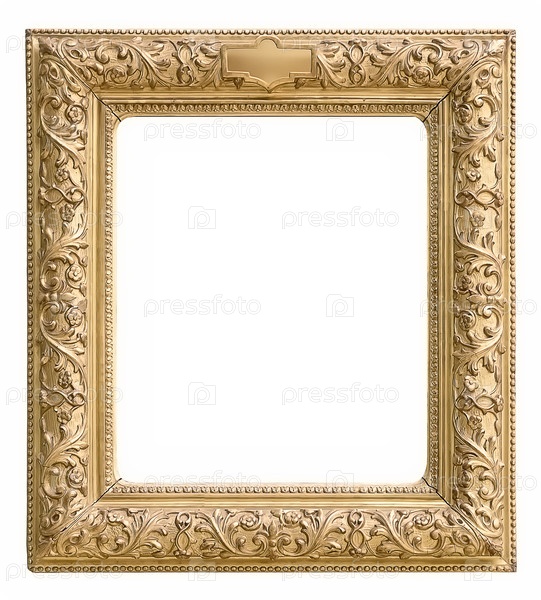 Золотая рама для картин, зеркал или фотографий, изолированных на белом фоне с готовым вырезом